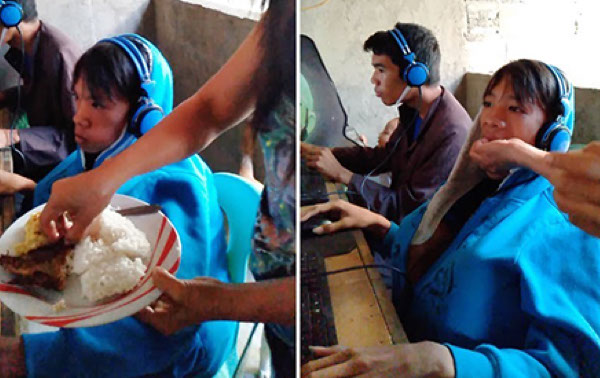 Madre le da de comer en la boca a su hijo de 13 años mientras juega videojuegos